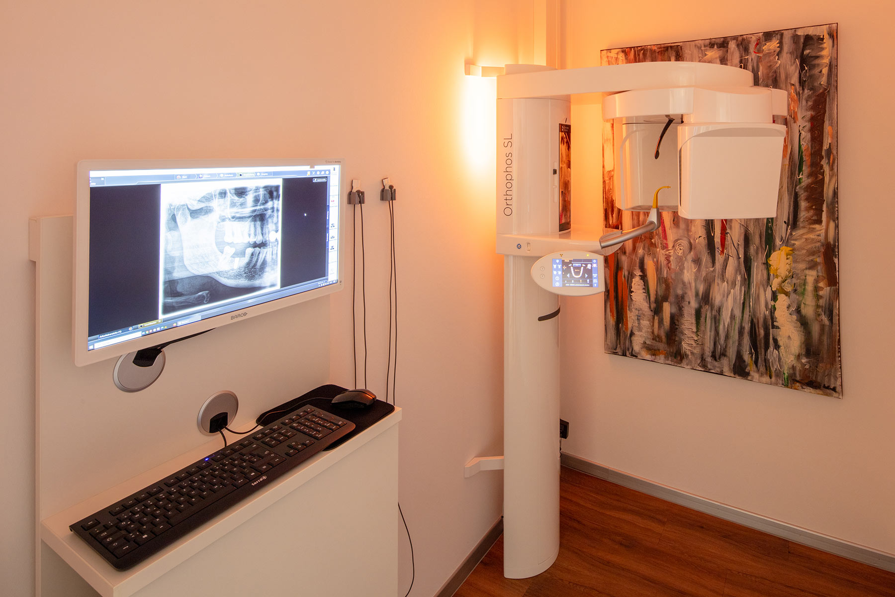 Wir verwenden ein absolut strahlungsarmes Röntgen, die Aufnahmen können sofort im Behandlungszimmer am Bildschirm mit Ihnen besprochen werden, auch können wir diese weiteren Behandlern – mit Ihrem Einverständnis – per email weiterleiten.